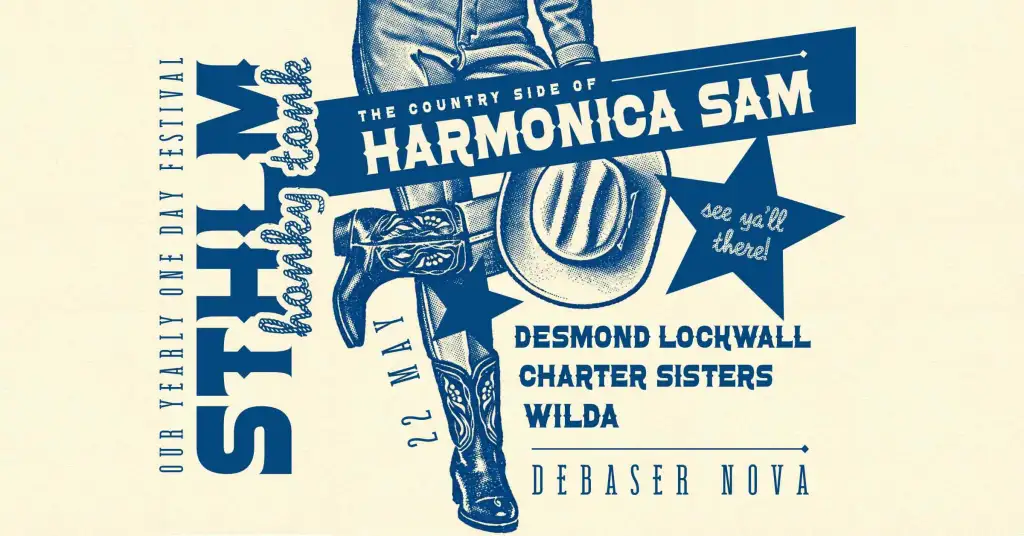 Sthlm Honky Tonk festivalwww.debaser.se/events/sthlm-honky-tonk-festival-wilda-desmond-lockwall-charter-sisters-the-countryside-of-harmonica-samBandet består av Peter Andersson på pedal steel, Ulrik Jansson på ståbas, Robert Skoglund på trummor, Johan Bandling Melin på lead guitar och stämsång samt Harmonica Sam på sång och gitarr.…
